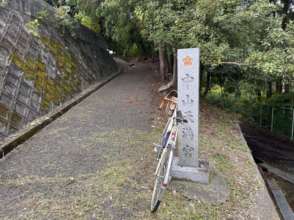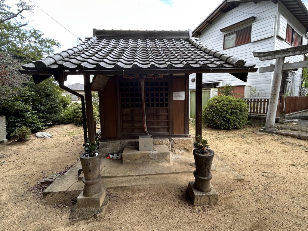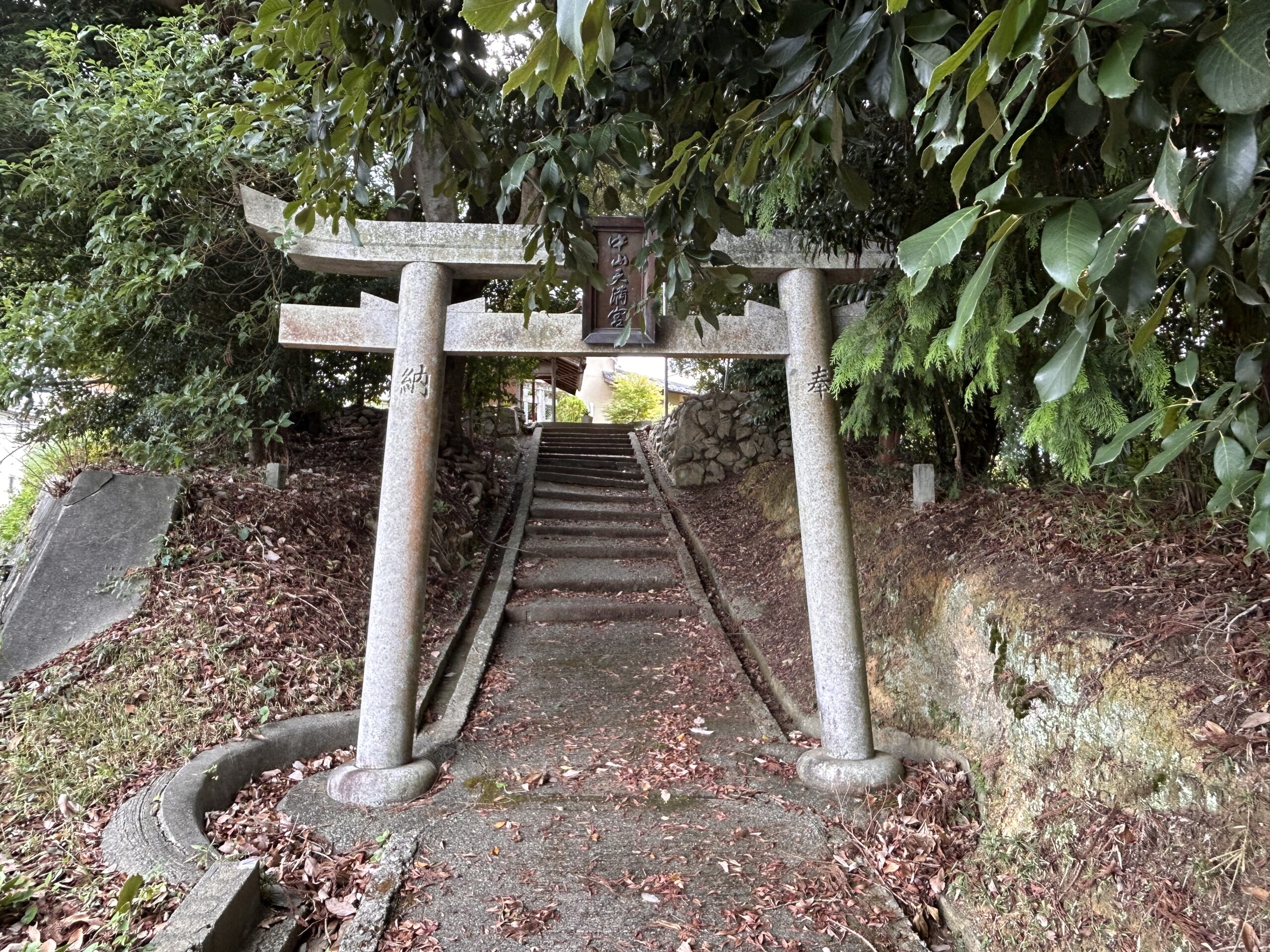 途中にあった住宅に囲まれた小さな神社、中山天満宮。