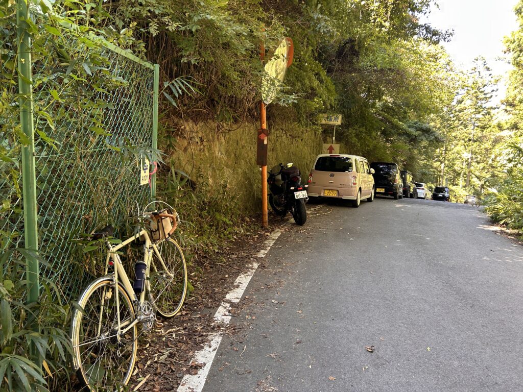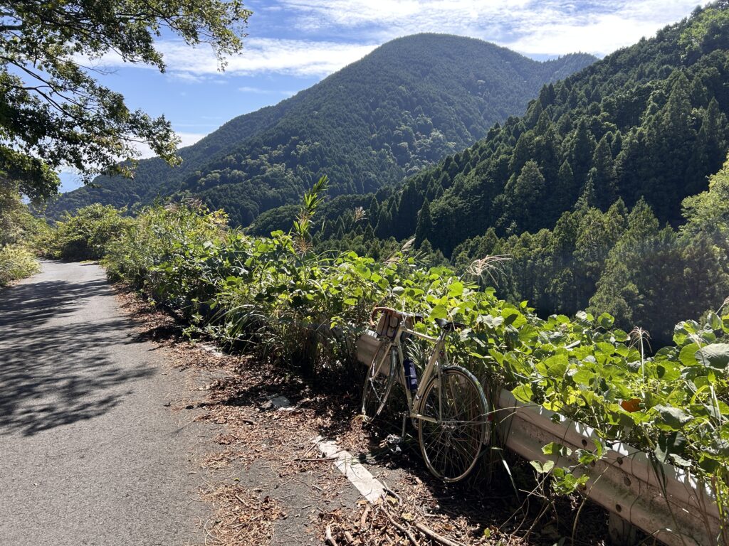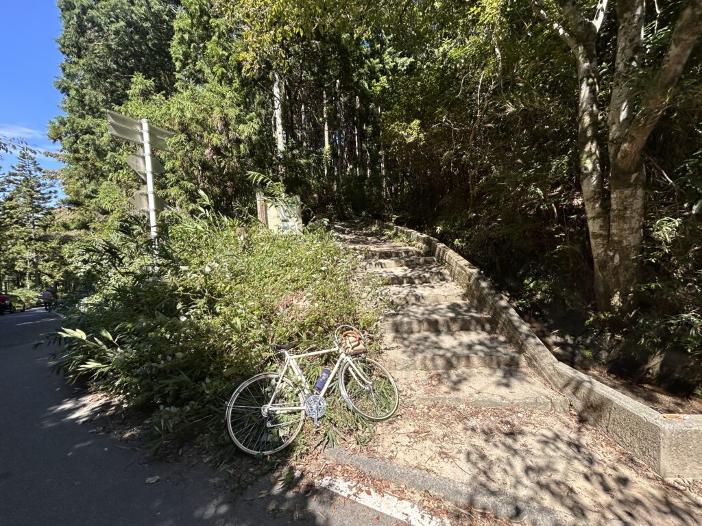 旧道との分岐のベンチで小休止と思ってたんですが先客が座ってたのでそのまま通過、足を着かずに峠のてっぺんまで上れました。
