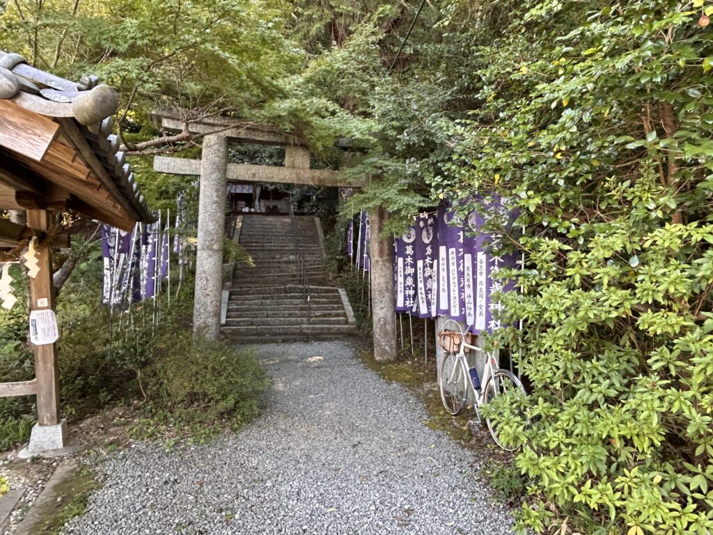 山麓線に出る手前に高鴨神社という神社があるので寄ってみます。(神社あったらハズせないようになってしまってます・・・。)