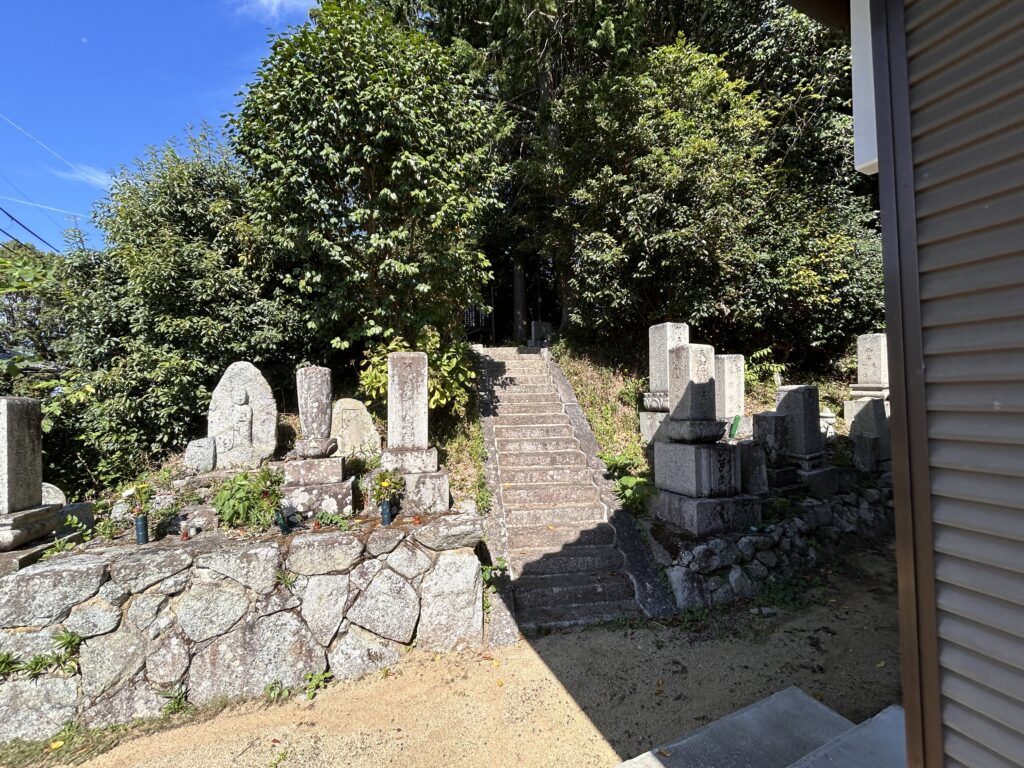小さなお寺と墓地があり、その中の石段を上がった所にありました。