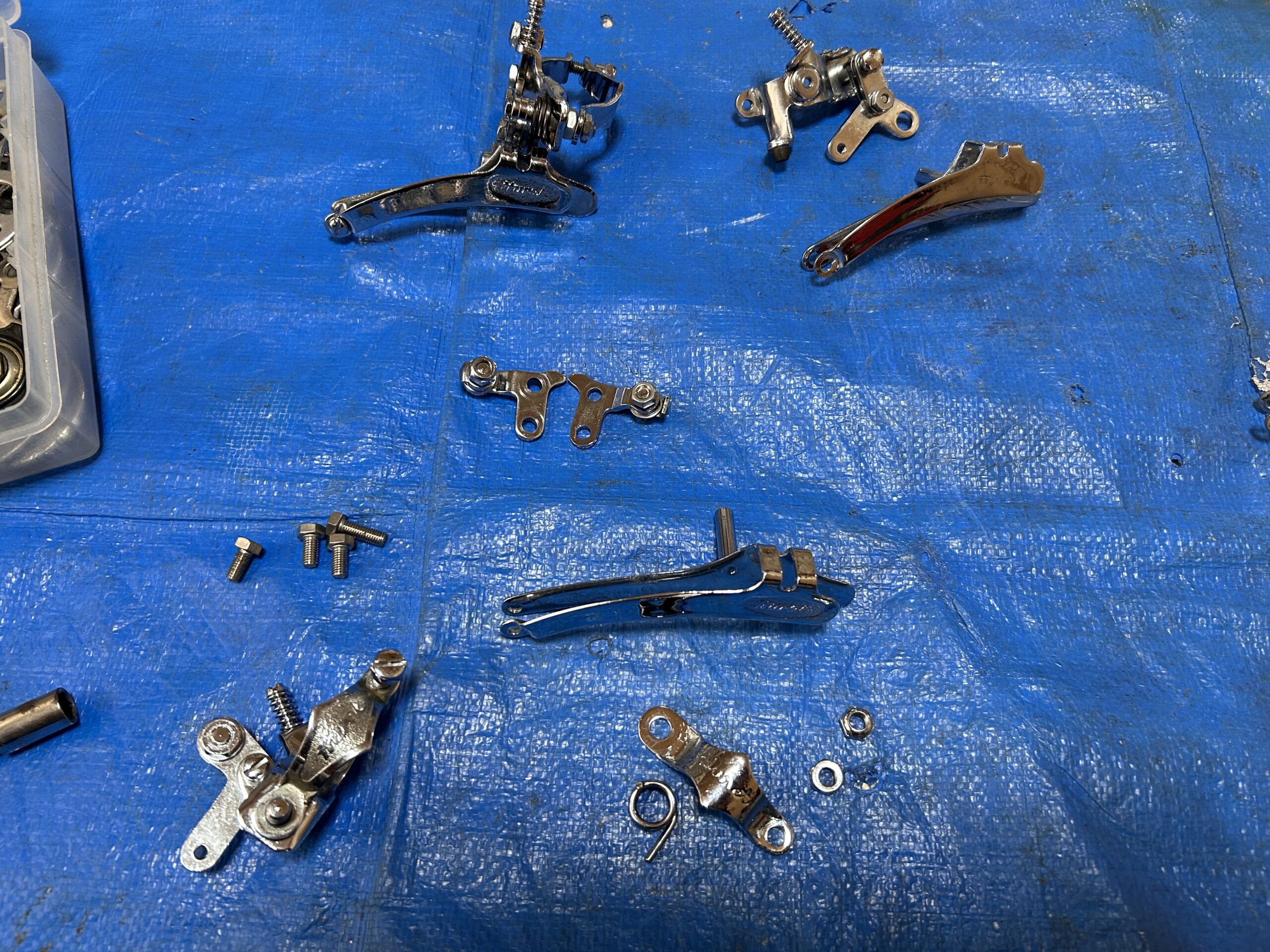 レバーは前述のとおりアルビー用では無理があったので仕方がないとしても、Fディレイラーは古いタイプのジャンク品がいくつかあったような・・・。
