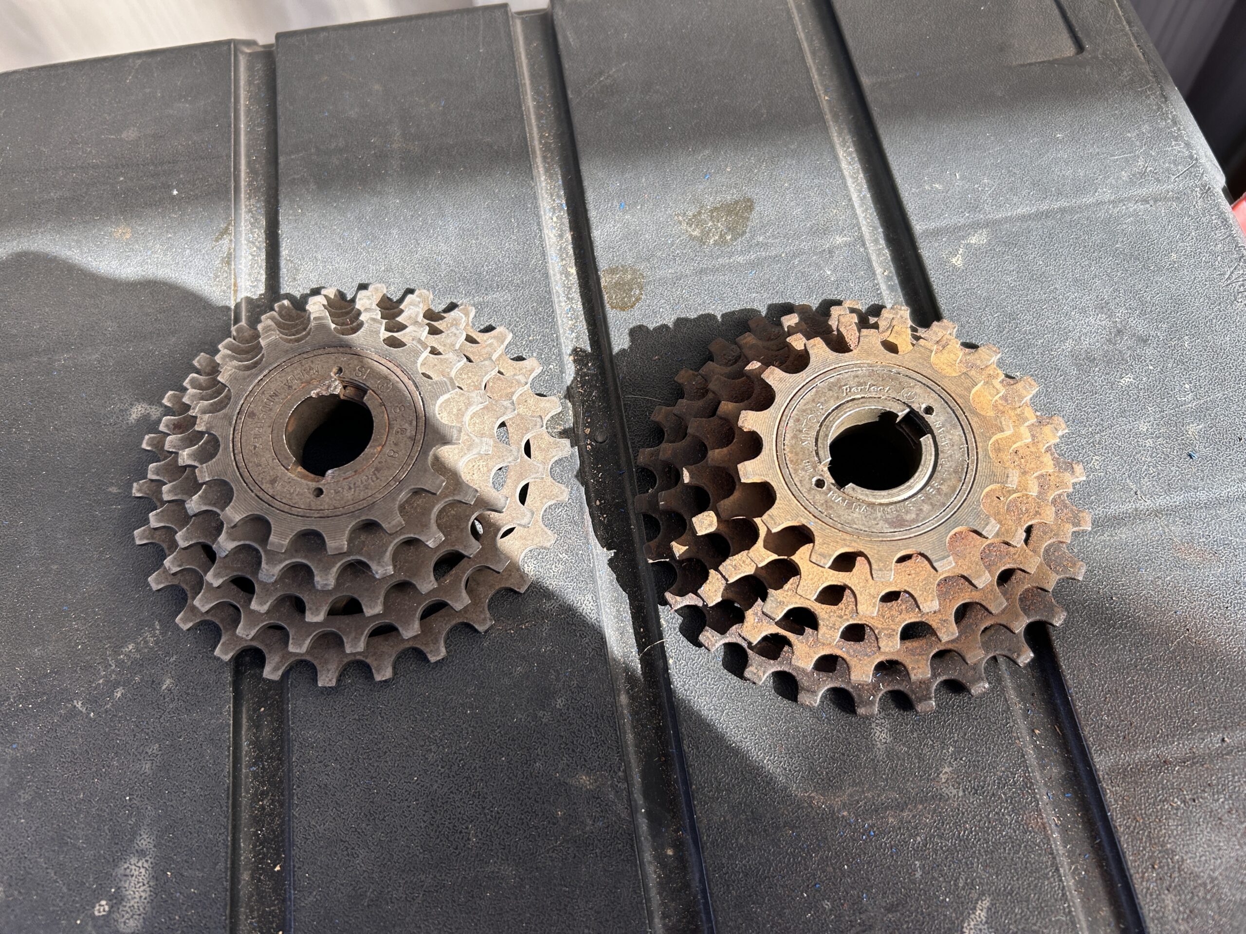 右のはかなり錆びてて回転も渋いですが歯はほとんど減ってないようです。