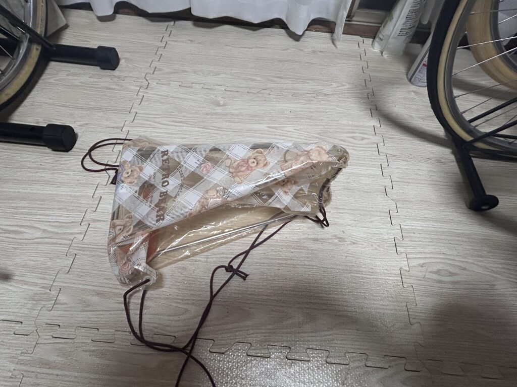 せっかくパニア台付けたのでたまにはパニアバッグも使ってみます。(昔トモダサイクルで買った980円の貧素なヤツしか持ってないけど・・・。)