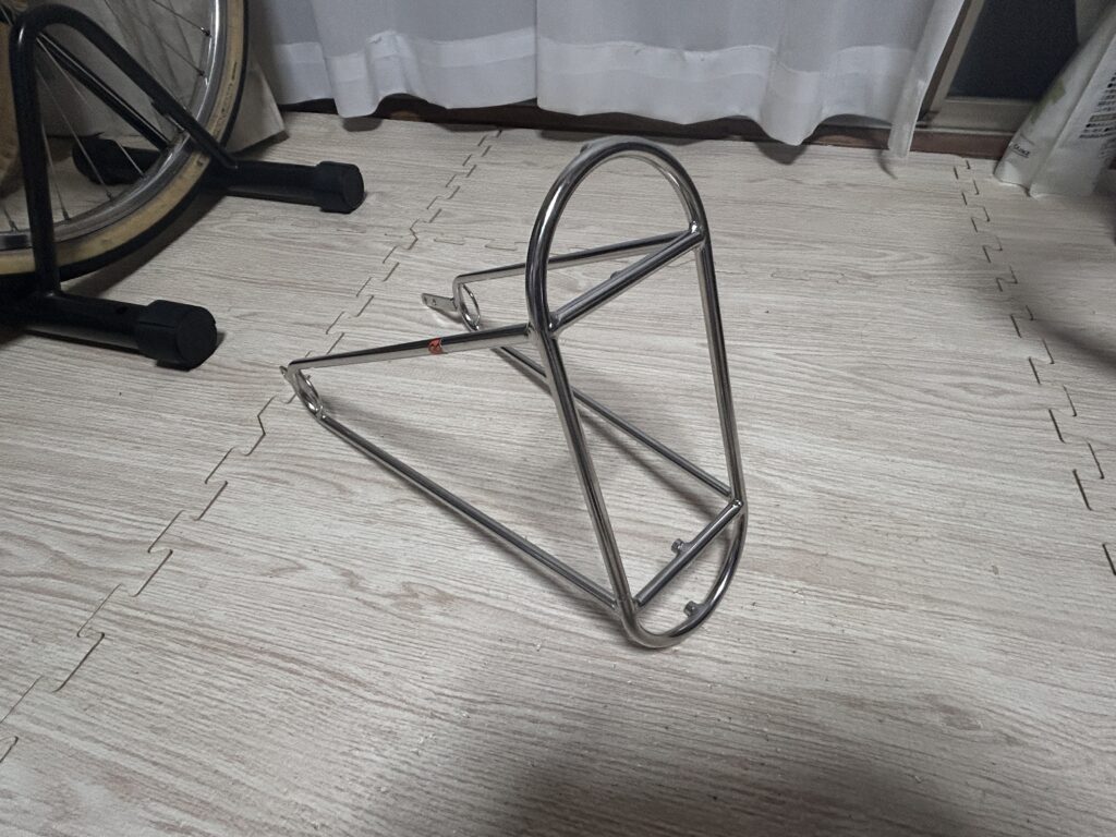 これだと輪行の際はパニア台とドロヨケを一緒に外せばさほどパッキングの妨げにはならない気がします。