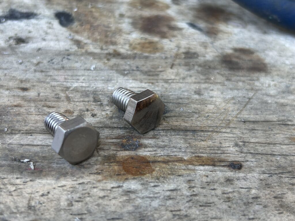 M6のスマートなネジがないのでステンの6角ボルトの頭を少し丸く削ります。