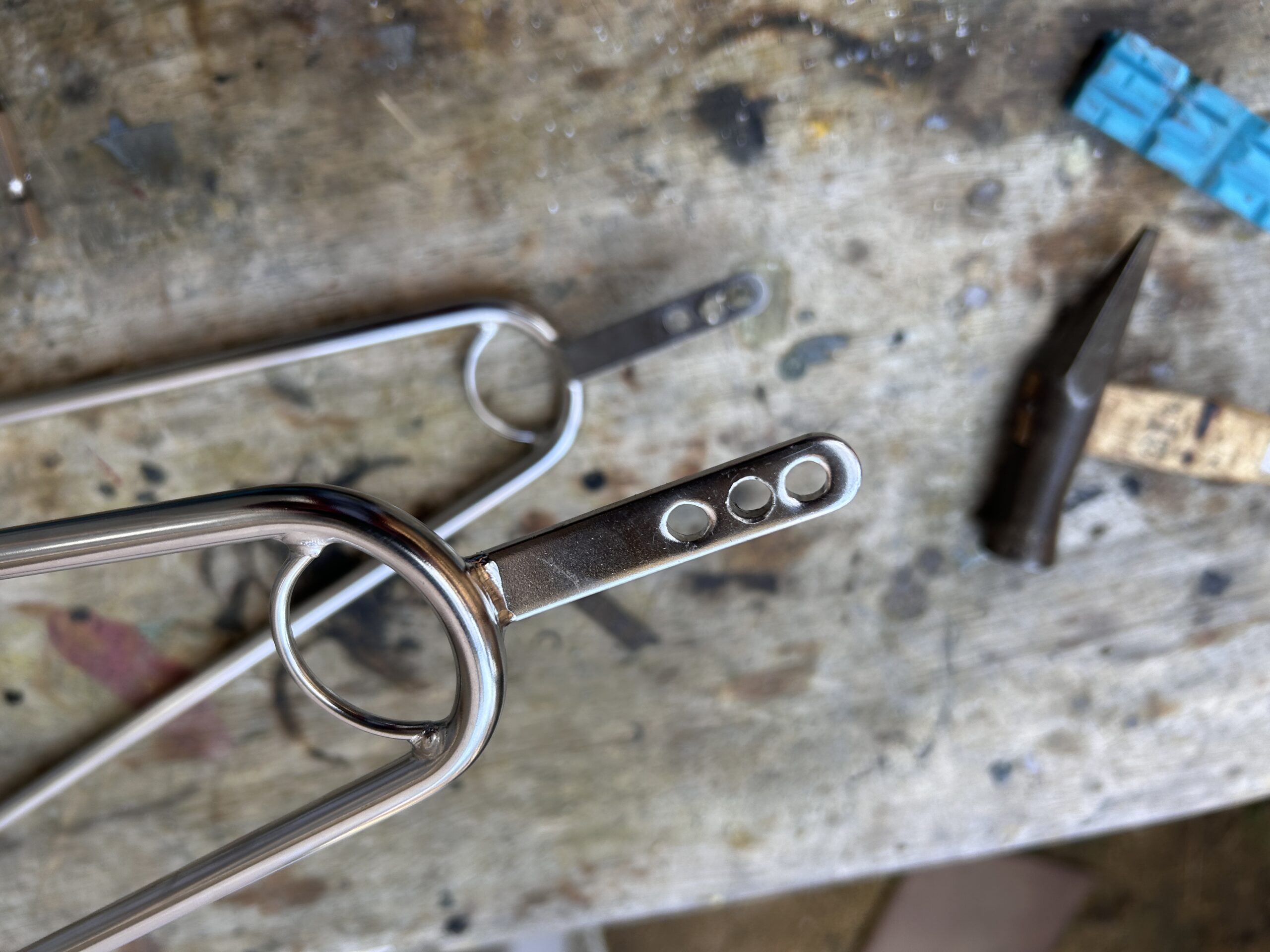また、パニア台のステーにはもともと開いてた穴がひとつ残っているのでダルマネジをココに付ければ輪行時にはパニア台のネジだけ外せばいけるんですが、見た目的に美しくなさそうなので今回は見送りました。