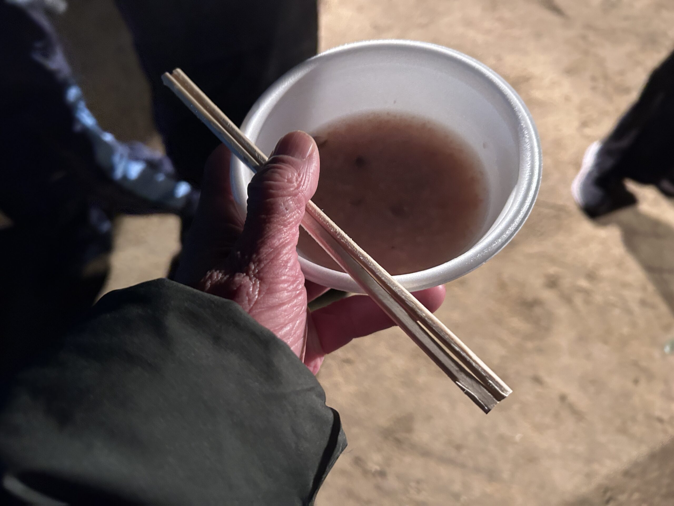 参拝後は小豆粥の振る舞いがあります。寒い中なのでほっこりします。
