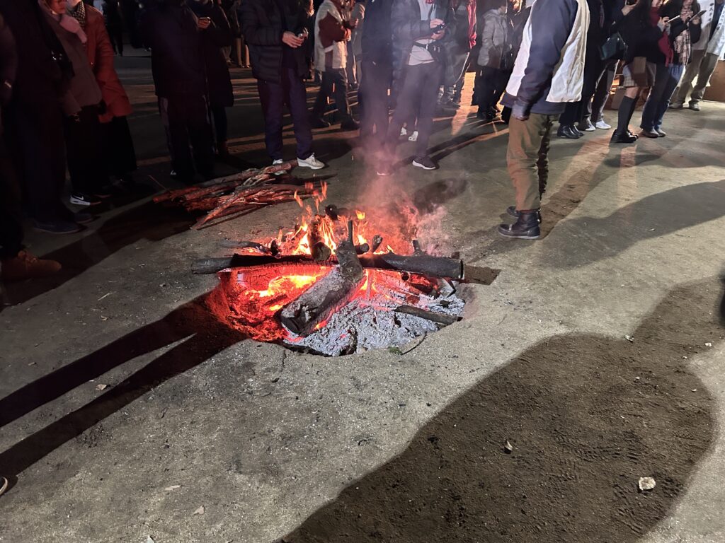 境内ではたき火が焚かれていて暖を取ることが出来ます。