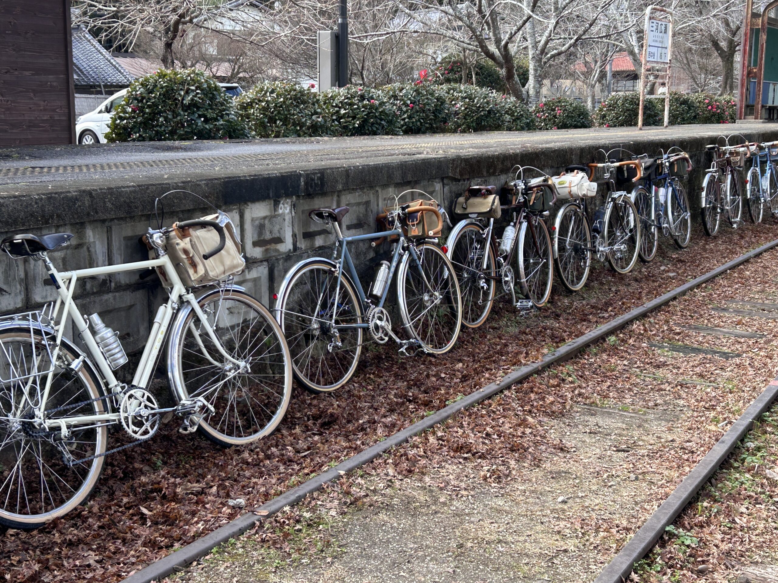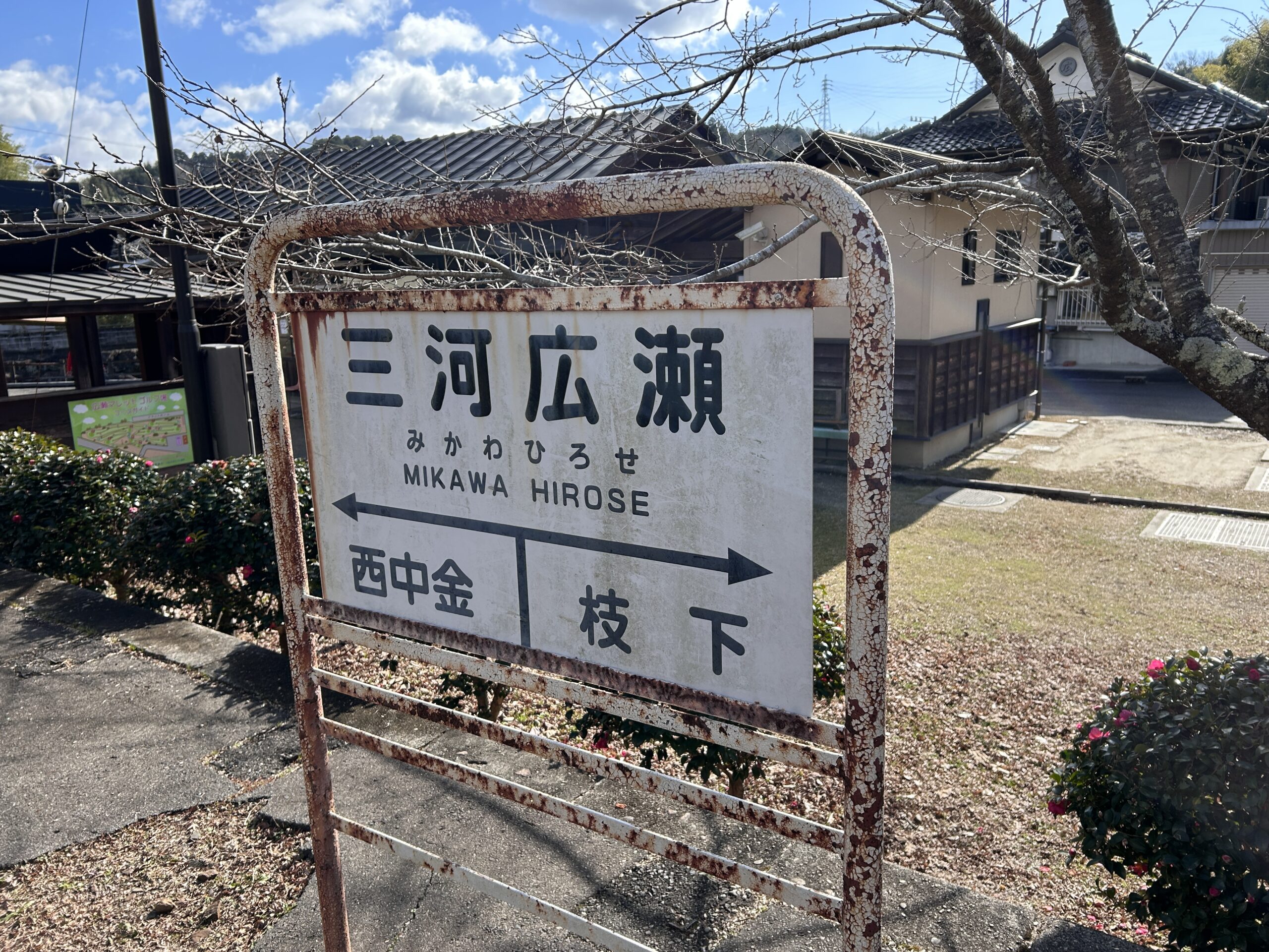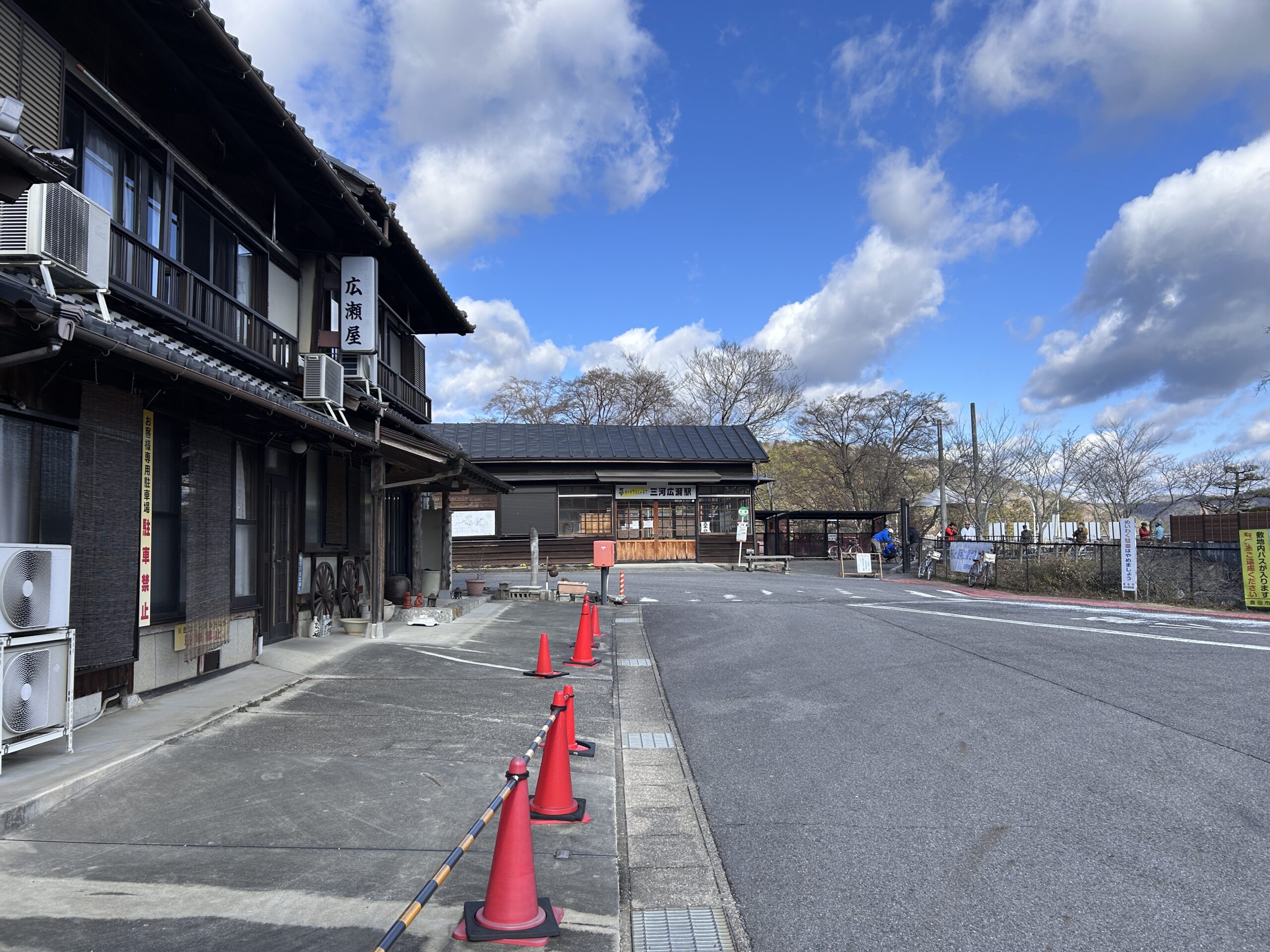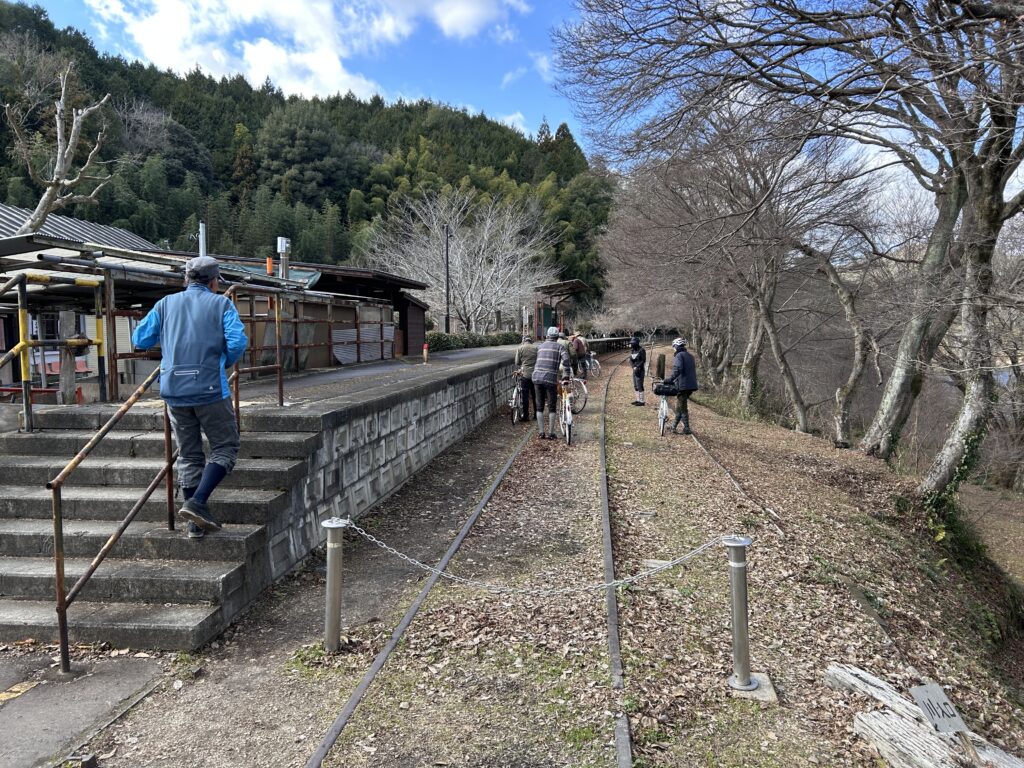 小さな峠を越えて少し走ると最初の休憩場所・広瀬駅跡です。
