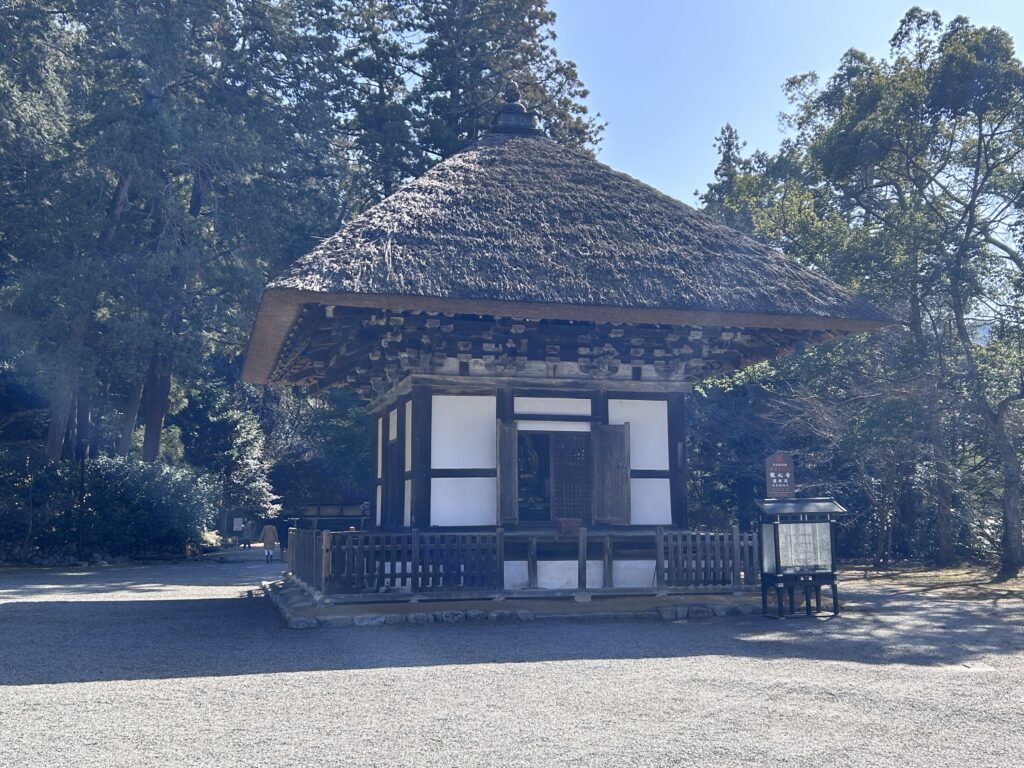 正成が三重塔として建立しかけたのですが湊川で討ち死にしてしまったため建築が頓挫、その後茅葺き屋根を乗せてお堂としたものだそうです。