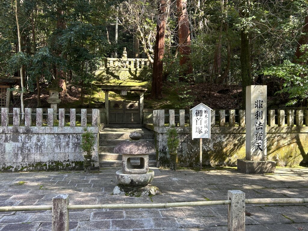 湊川で戦死した正成の首はこの観心寺に送り返されここに葬られたとのことです。