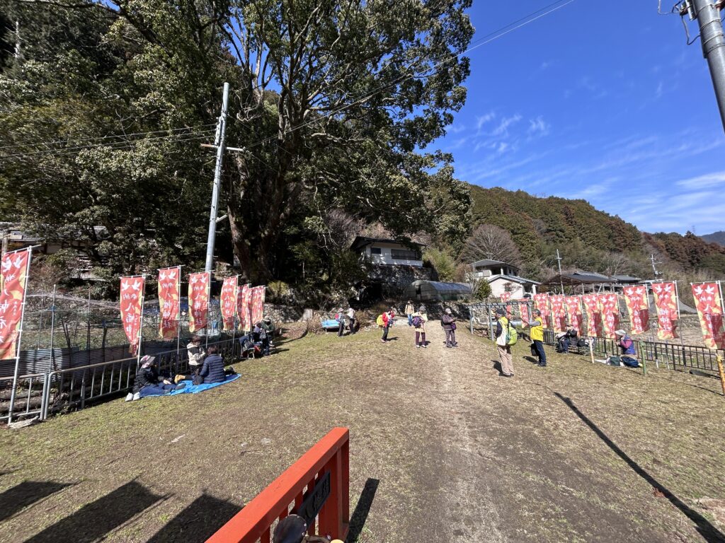 八幡神社、河内長野市のボランティアさんに引率された多数の高齢ハイキング客が昼休憩中。