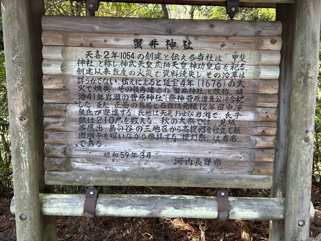 蟹井神社に行ってみますが境内は石段の上で陽も差さないのでボツ。